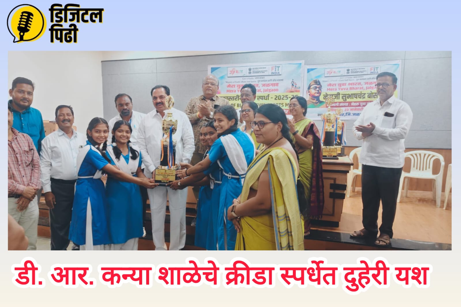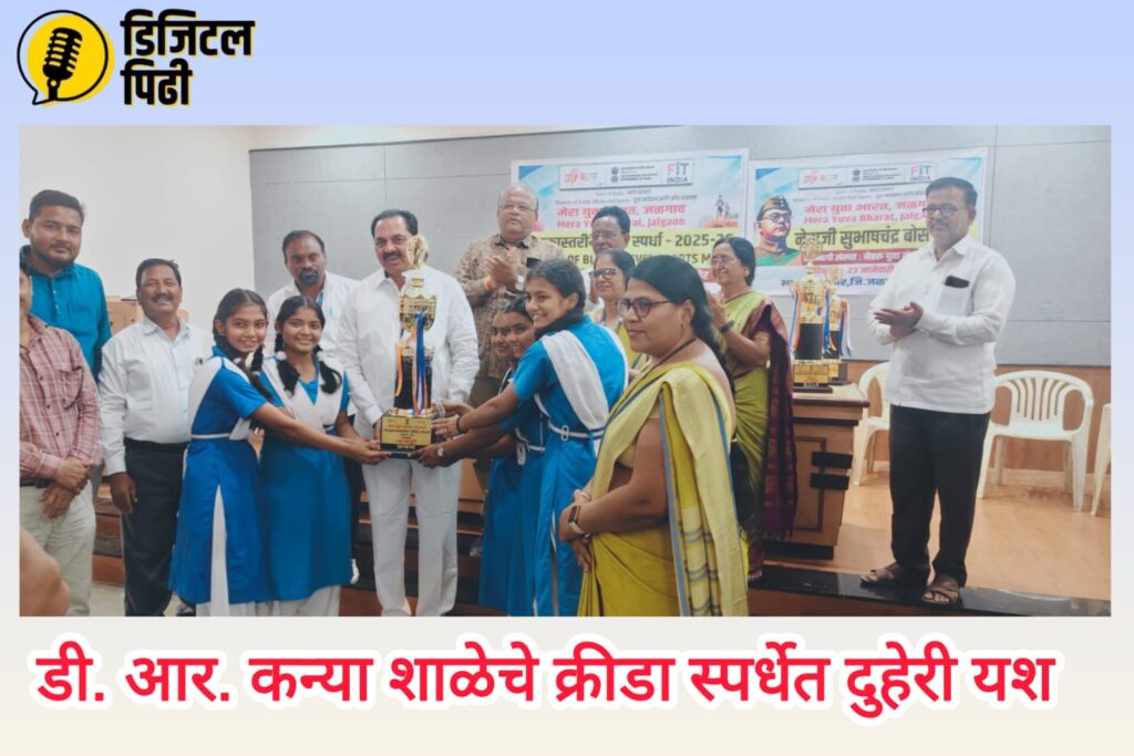 अमळनेर | प्रतिनिधी :युवा कार्यक्रम व क्रीडा मंत्रालय, भारत सरकार आयोजित मेरा युवा भारत – जळगाव अंतर्गत विविध क्रीडा स्पर्धा २०२५–२६ नुकत्याच उत्साहात पार पडल्या. या स्पर्धांमध्ये डी. आर. कन्या शाळेच्या विद्यार्थिनींनी खो-खो व कबड्डी (मुली) या दोन्ही क्रीडा प्रकारांत विजेतेपद पटकावत दुहेरी यश संपादन केले.