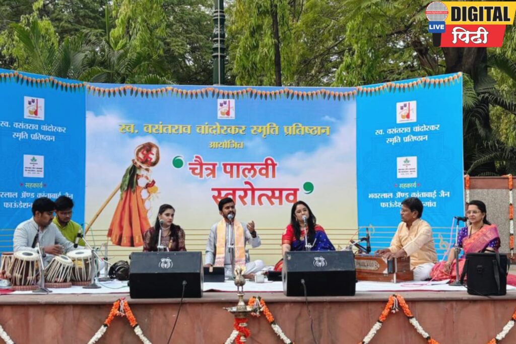 जळगाव: स्व. वसंतराव चांदोरकर स्मृती प्रतिष्ठानच्या वतीने आयोजित “चैत्र पालवी स्वरोत्सव” मैफल गुढी पाडव्याला महात्मा गांधी उद्यानात उत्साहात संपन्न झाली. भक्ती गीते, अभंग, नाट्यगीत व सुगम सांगितले नटलेली ही मैफल उत्तरोत्तर रंगत गेली.